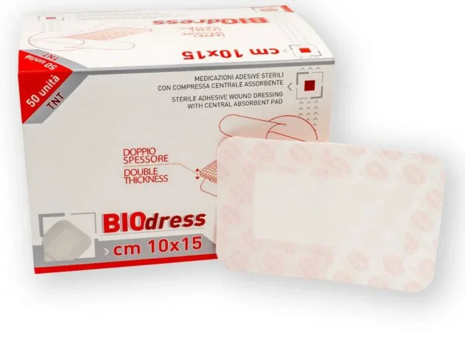 Medicazione sterile adesiva 10x15 in tnt con compressa centrale assorbente