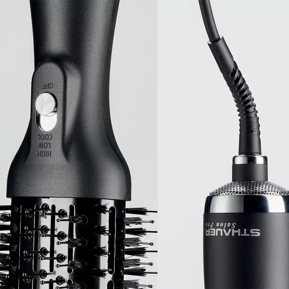 E' un modellatore ad aria con manico ergonomico che asciuga i capelli per styling ricci o lisci. Dotato di 3 regolazioni di temperatura ed esclusive prese per il flusso d'aria,dona lucentezza e volume ai capelli.