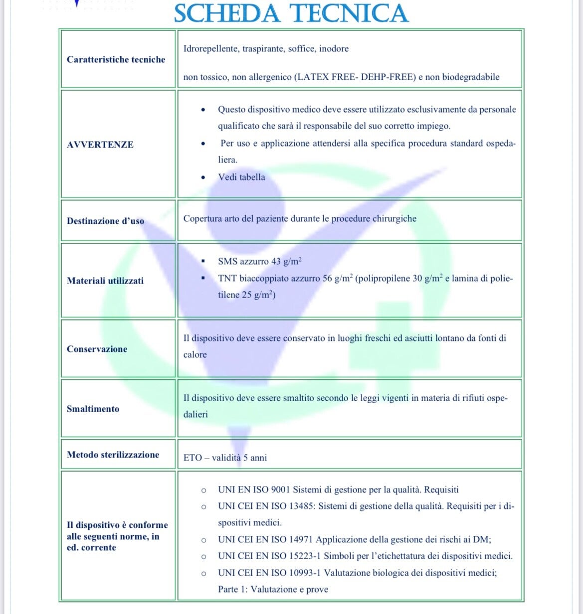 Gambali in biaccoppiato sterili, misura 75x120, in tnt